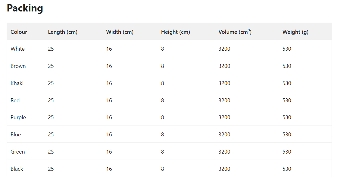 • Bag Size: 26.5*12*18.5cm