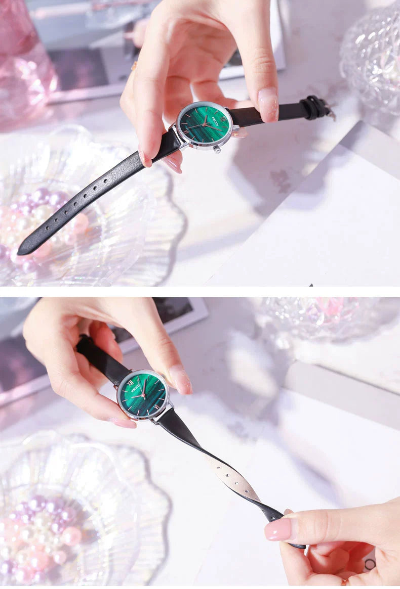 ✨ Kezzi 1851 Little Green Watch — Elegant White Shell Dial with 30M Waterproof Design